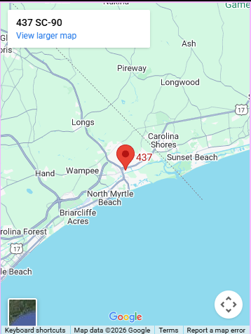 The shop is located at 437 Highway 90 East, Little River, South Carolina, 29566, USA.
